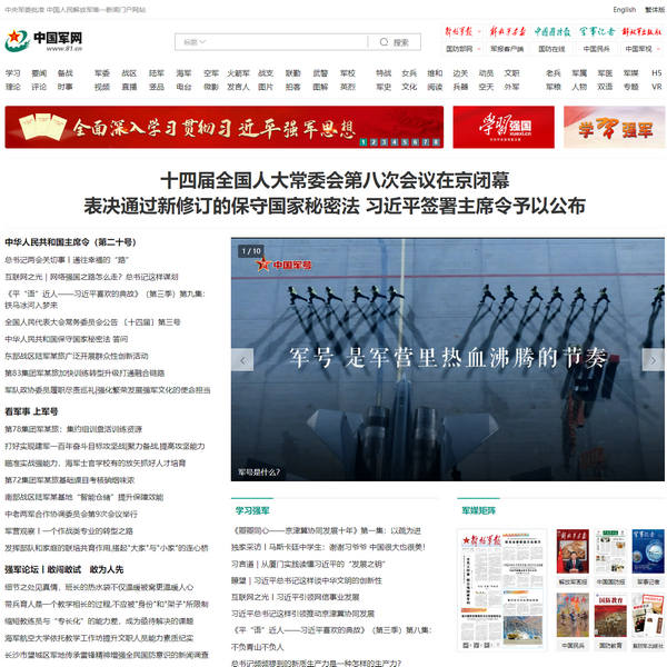 中國(guó)軍網(wǎng)是經(jīng)中央軍委批準(zhǔn)的中國(guó)人民解放軍***新聞門戶網(wǎng)站,***時(shí)間向全球網(wǎng)民發(fā)布權(quán)威軍事資訊,追蹤軍事熱點(diǎn),反映軍事動(dòng)態(tài),介紹國(guó)內(nèi)外***武器發(fā)展動(dòng)態(tài),擁有中國(guó)***的軍事圖片庫(kù),提供***發(fā)布的軍事視頻。